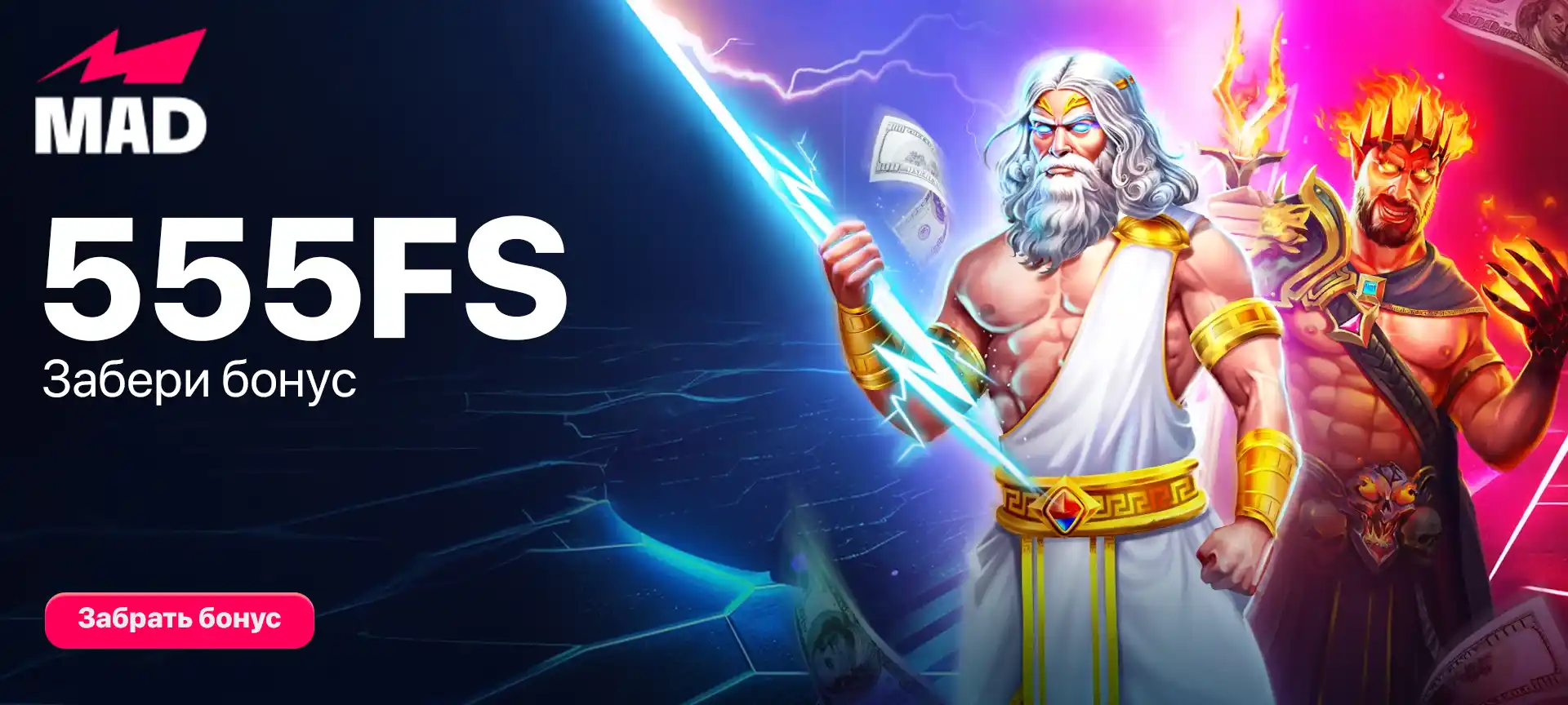 После регистрации в Mad Casino пользователю доступен приветственный бонус при выполнении условий акции.